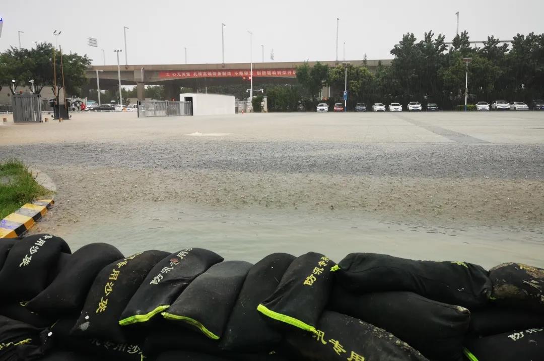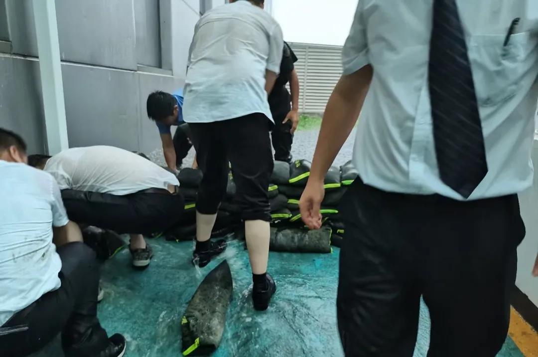 “积水越来越多,雨水已经开始往地下车库倒灌了。”7月20日下午16:35,正在巡视的保卫人员打来一通电话。电话那头话音刚落,这边党群工作部的人员便迅速奔向了地下车库。地下车库停放着公司员工近200辆车,除此之外,整栋办公大楼的配电所也在这里,守住这片阵地的重要性不言而喻。党群工作部从干部到员工,从后勤到前勤,先后有30余名同志加入抢险。他们手提肩扛,踩着及膝的雨水,在几个出入口和沙袋储存点之间来回穿梭、奔跑、封堵灌水口。17:14,一道迅速建立起的临时防线正式形成,有效遏制了洪水倒灌。18:30,雨势稍缓、洪水稍退,他们又利用有限时间的间隙迅速协调员工将地下车库停放车辆停至安全区域,确保了公司员工近200辆车不被水浸泡,有效地保障了财产安全。