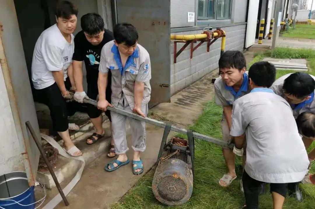 暴风骤雨下的结构件公司第一时间安排全体在岗员工搬运沙袋堵门口、张搭雨布保设备、挖开排水口促排水,最大程度地保证了公司利益不受损失。汛情过后,他们第一时间购买抽水设备,组织防汛人员,白夜班不间断开展车间雨水外排、油污杂物清理等相关工作。设备维修相关人员全面排查设备和供电线路,并采用吹风机对设备不间断风干,确保线路安全,经过大家的共同努力,结构件公司于7月23日上午实现全面投产,各工区设备正常运行。