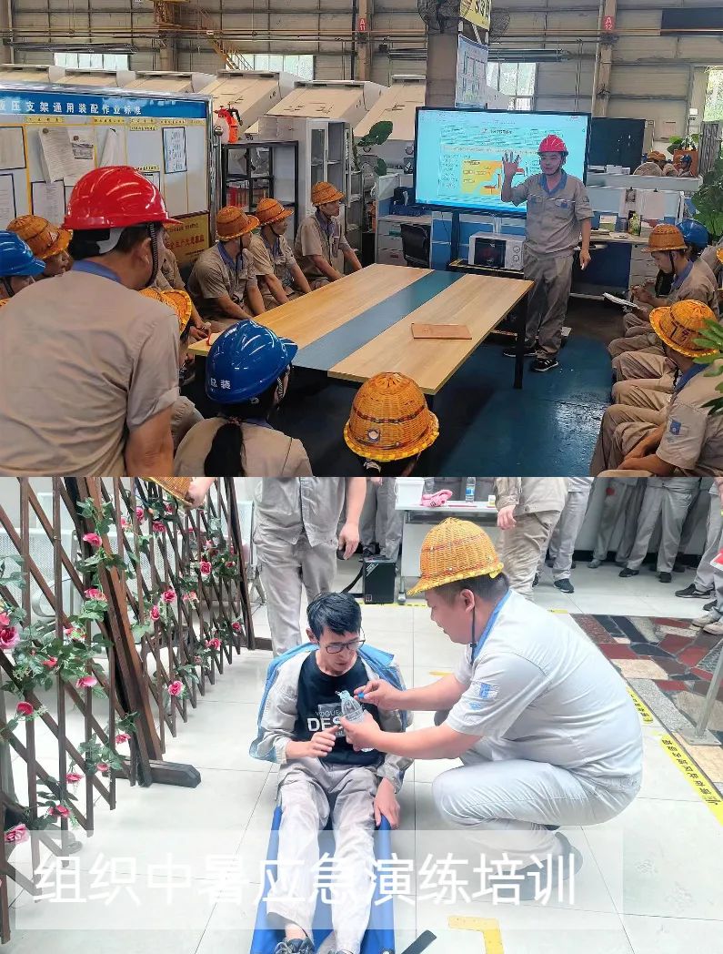 各生产单位、各分会也施“凉”策、迎“烤”验,结合安环部门编制的教材,分别组织中暑应急演练培训。为改善员工作业环境,确保员工的健康和安全,结构件公司还专门更新了冷风机设备,全力保障安全生产平稳有序。