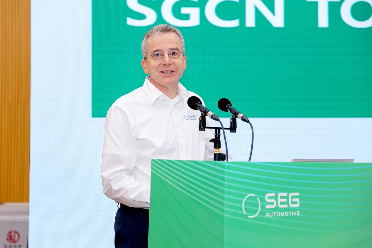 随后,索恩格全球首席执行官苏帆渡 (Ferdinando Sorrentino)先生上台并全程用中文致辞。他高度赞扬了索恩格中国所取得的杰出成绩,并表示,在各级政府的大力支持之下,索恩格必将在长沙新能源汽车产业取得新的成就。