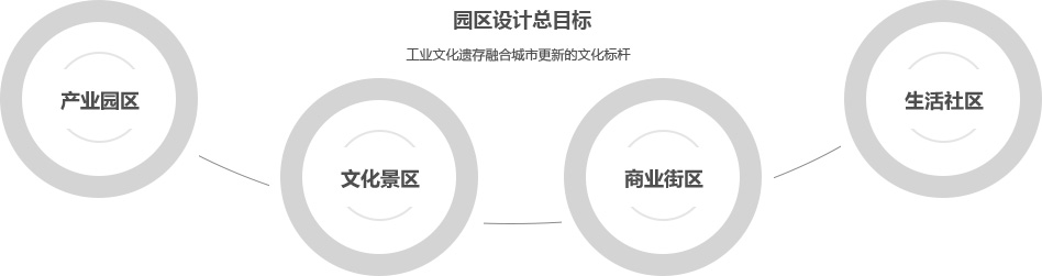 充分发挥工业老区建筑风貌、空间布局以及植被环境的先天资源,结合货运铁轨的历史遗留资源,并融入文科双创产业中文化展示和文化消费等产业元素,建成一个有历史烙印,有艺术展现,有生活体验的城市文化公园,全面打造区域宜居、宜业、宜乐的生态环境,成为中原区有产业特色的慢生活城市客厅。